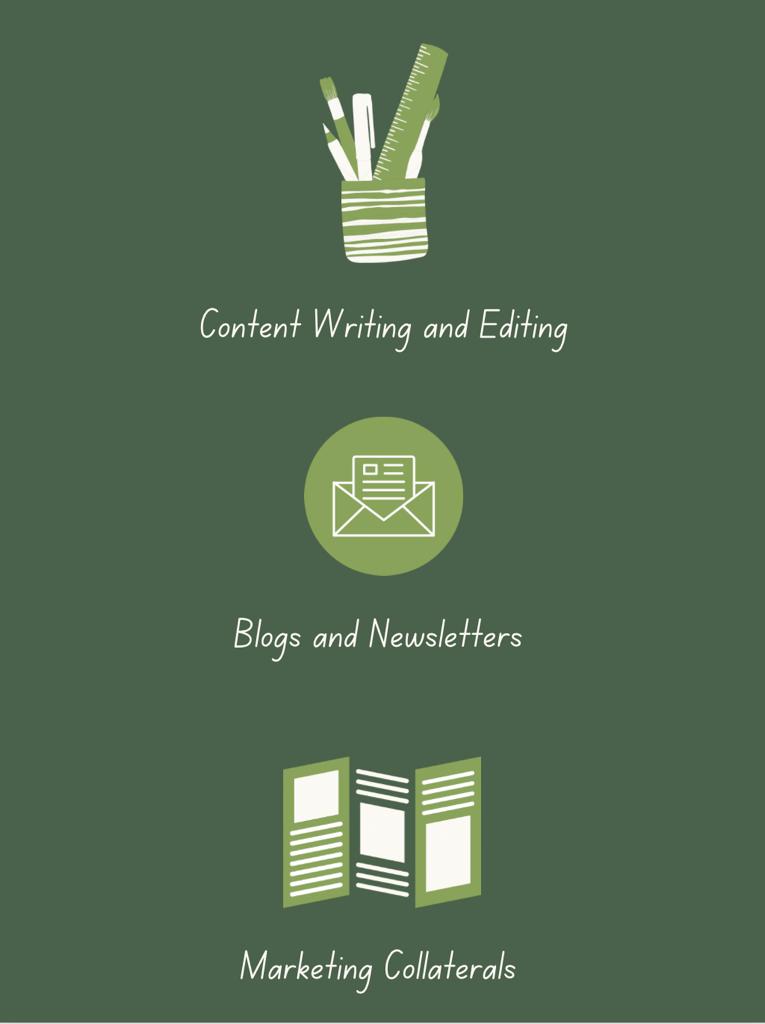 This includes all your online branding touchpoints–website and logo design, social media and online events, marketing collaterals such as brochures and newsletters, creating and editing content such as press releases and blogs, and much more.